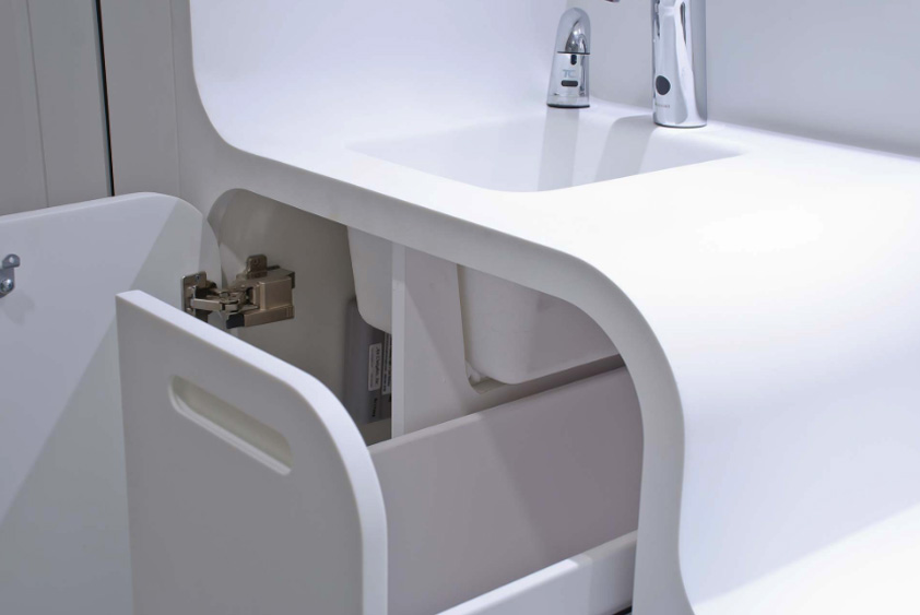 Podemos crear espacios sin juntas, lo cual impide la absorción de líquidos y facilita su limpieza y mantenimiento.